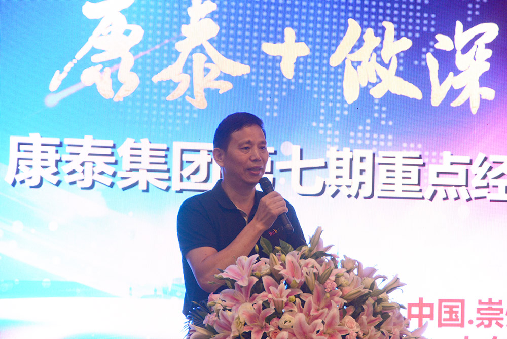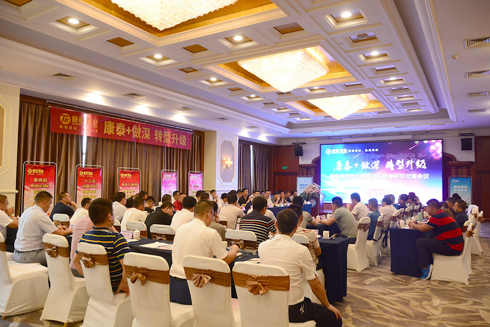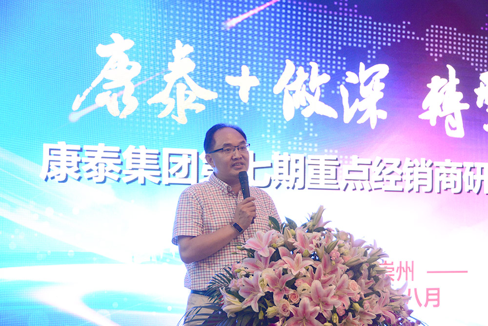 盛夏八月,陽光明媚,海闊天空。8月25日,以“康泰+做深、轉型升級”為主題的康泰集團第七期重點經(jīng)銷商研討交流會在中勝大酒店召開。本次會議的目的是聯(lián)絡感情、增進友誼,分享標桿經(jīng)銷商新營銷發(fā)展理念和經(jīng)驗,傾聽經(jīng)銷商對未來發(fā)展建議,匯報闡述康泰轉型升級發(fā)展方向,實現(xiàn)企商共同升級、共同發(fā)展??堤┘瘓F董事長兼總裁林云青,副董事長葉日才,副總裁鄭光鏵,副總裁張文霖,銷售總監(jiān)何朝暉等公司領導,銷售中心各事業(yè)部負責人,以及來自全國的重點經(jīng)銷商等共計70余人參加了此次會議。