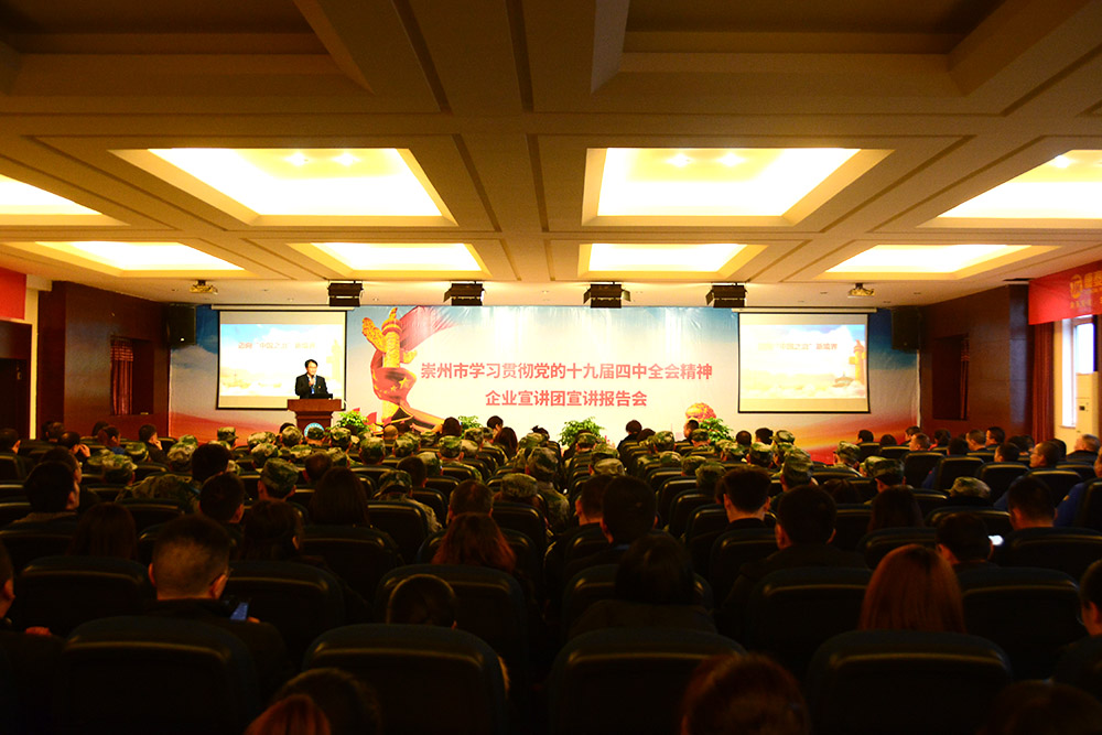 在全市上下深入開展學(xué)習(xí)宣傳貫徹黨的十九屆四中全會(huì)精神之際,12月16日下午,根據(jù)市委統(tǒng)一安排,崇州市學(xué)習(xí)貫徹黨的十九屆四中全會(huì)精神企業(yè)宣講報(bào)告會(huì)在康泰集團(tuán)舉行。成都市第十七屆人大代表周云作黨的十九屆四中全會(huì)精神宣講。崇州市相關(guān)單位及經(jīng)開區(qū)領(lǐng)導(dǎo)、經(jīng)開區(qū)重點(diǎn)企業(yè)黨支部書記及企業(yè)負(fù)責(zé)人、黨員、預(yù)備黨員等參加了此次宣講會(huì)。