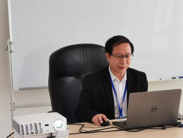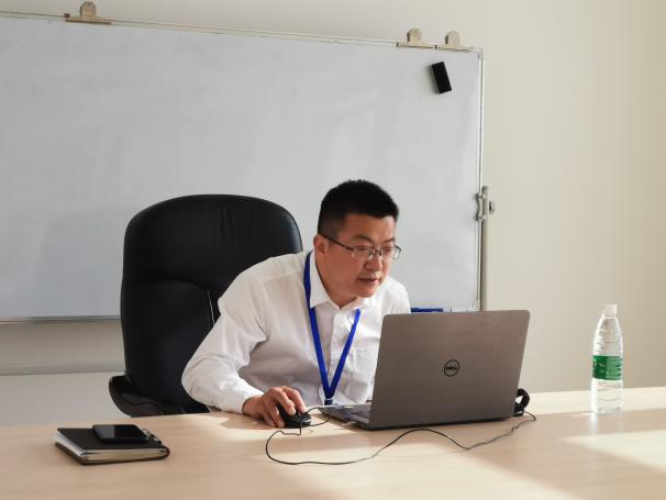 圖為技術(shù)總監(jiān)張雙全和副總監(jiān)朱鵬飛作線上產(chǎn)品培訓(xùn)