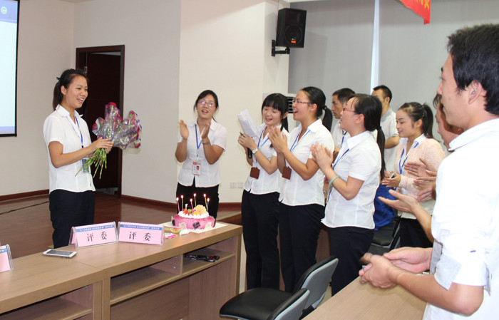 演講比賽結束后,9月員工生日會隆重舉行。很多9月生日的員工因為工作原因未能達到現(xiàn)場,隨著“祝你生日快樂”熟悉的旋律響起,一段9月生日員工的PPT向大家展示了9月壽星們在工作崗位上的精神風貌,而來自采供中心的何瑤代表他們接受了大家的鮮花與祝福。