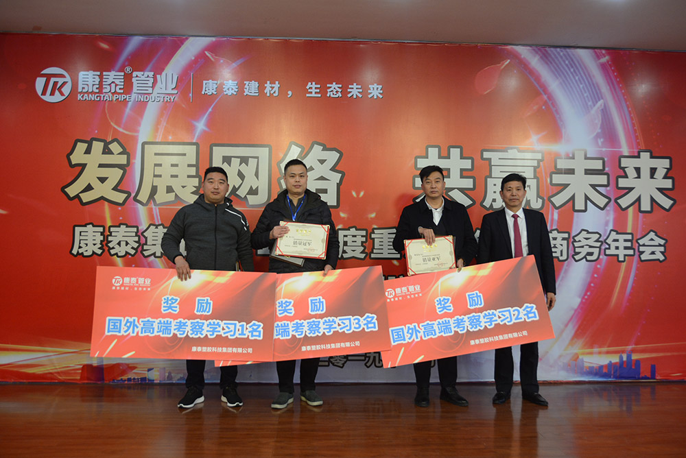 在結(jié)束完所有議程后,18時(shí)許,會(huì)議在熱烈的掌聲中圓滿閉幕。歲序更替,華章日新。2019年,對(duì)于康泰集團(tuán)來說是充滿期待和希望的一年??堤┘瘓F(tuán)致力于做“中國塑膠管道工程集采第一供應(yīng)商”的發(fā)展定位,以“為城市建設(shè)集成供應(yīng)生態(tài)管道系統(tǒng),管通全球”的企業(yè)使命,打造實(shí)現(xiàn)“百億康泰、百年康泰,中國民營企業(yè)500強(qiáng)”,全面構(gòu)建實(shí)現(xiàn)品質(zhì)康泰、智能康泰、生態(tài)康泰、康泰+跨越發(fā)展。讓我們攜起手來,共同開創(chuàng)康泰集團(tuán)更加美好的明天!
