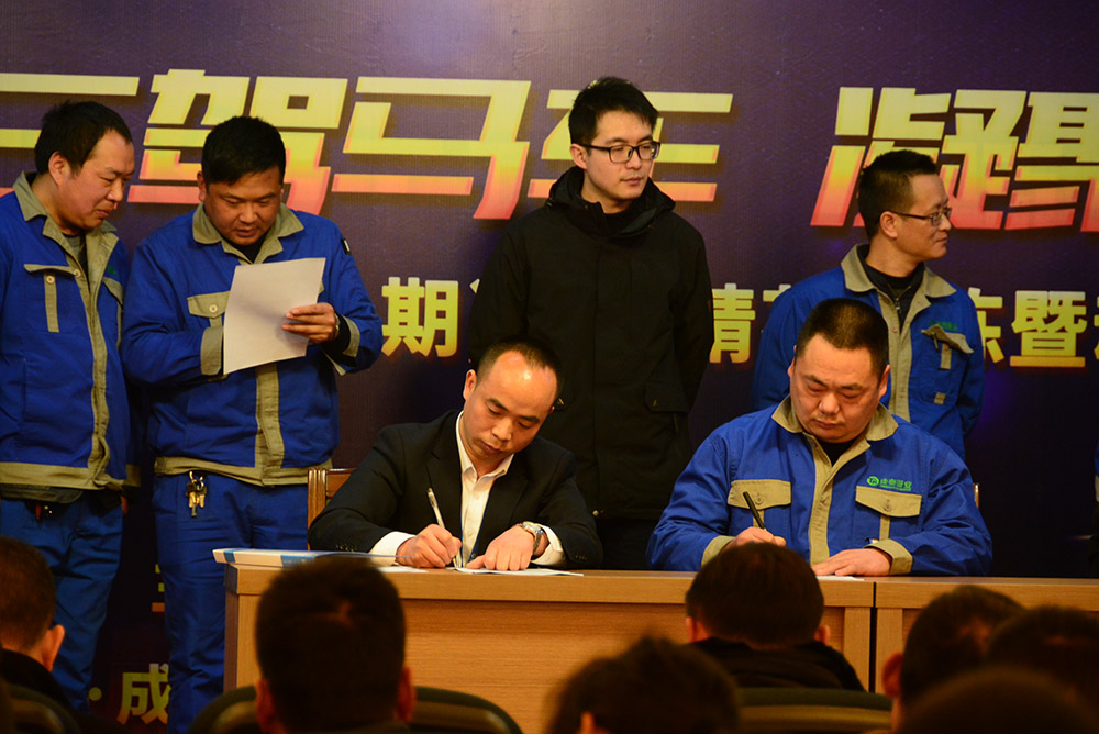 任命宣讀結束后,副總裁兼生產(chǎn)總監(jiān)張文霖與新任命的生產(chǎn)中心中層管理人員現(xiàn)場簽署了經(jīng)營目標責任書,責任落實到人,獎罰分明,更好完成任務。